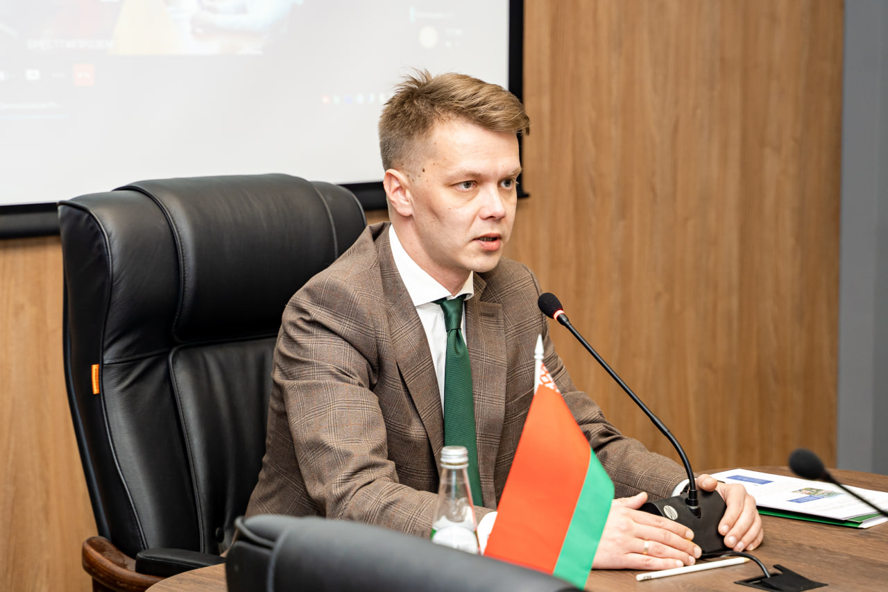 В студии УП «Проектный институт Белгипрозем» спикером встречи стал политический обозреватель телеканала ОНТ Игорь Петрович Тур.