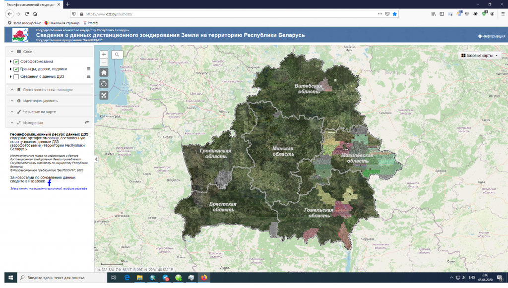 В настоящее время Георесурс данных ДЗЗ является одной из важных форм представления данных дистанционного зондирования Земли на территорию Республики Беларусь. Для ряда направлений профессиональной деятельности (таких как науки о Земле, экология и природопользование, региональная экономика, социальные и политические технологии, бизнес-информатика и др.) возможности картографического ресурса необходимо рассматривать в качестве базового инструментария для решения различных аналитических задач, а также средства регионального планирования и управления.