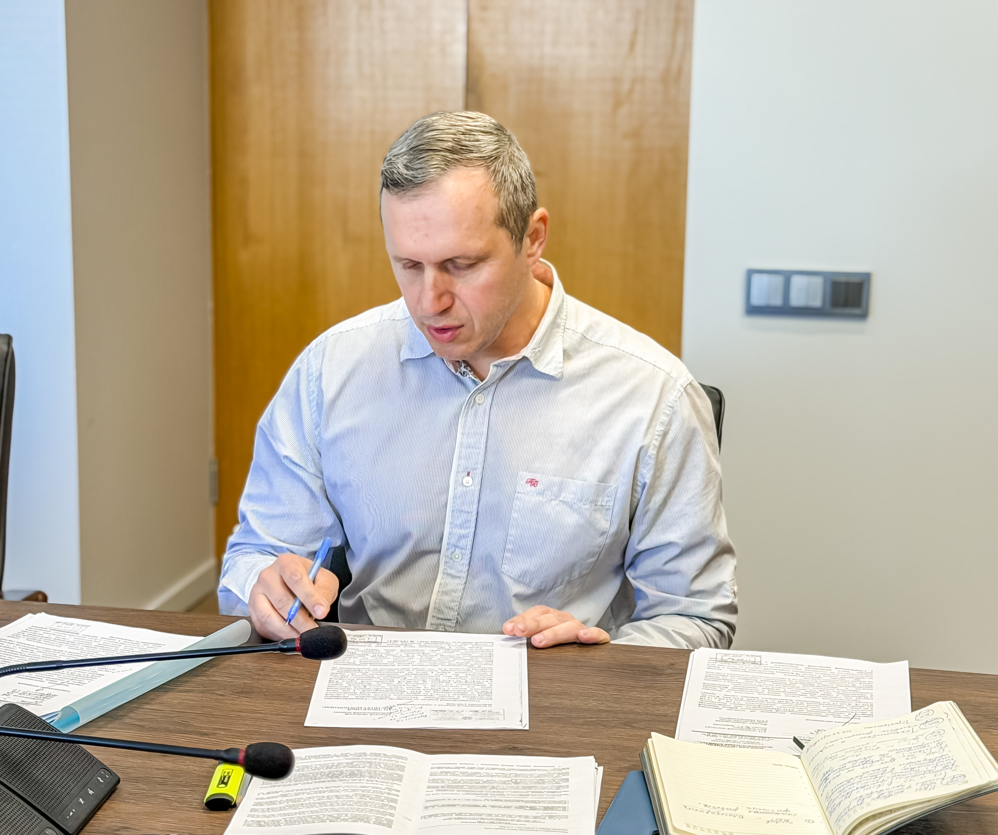 Алексей Николаевич поблагодарил коллектив за успешное выполнение экономических показателей 1-го квартала 2026 года. Особо отмечена результативность в части количества сформированных землеустроительных дел на земельные участки граждан.